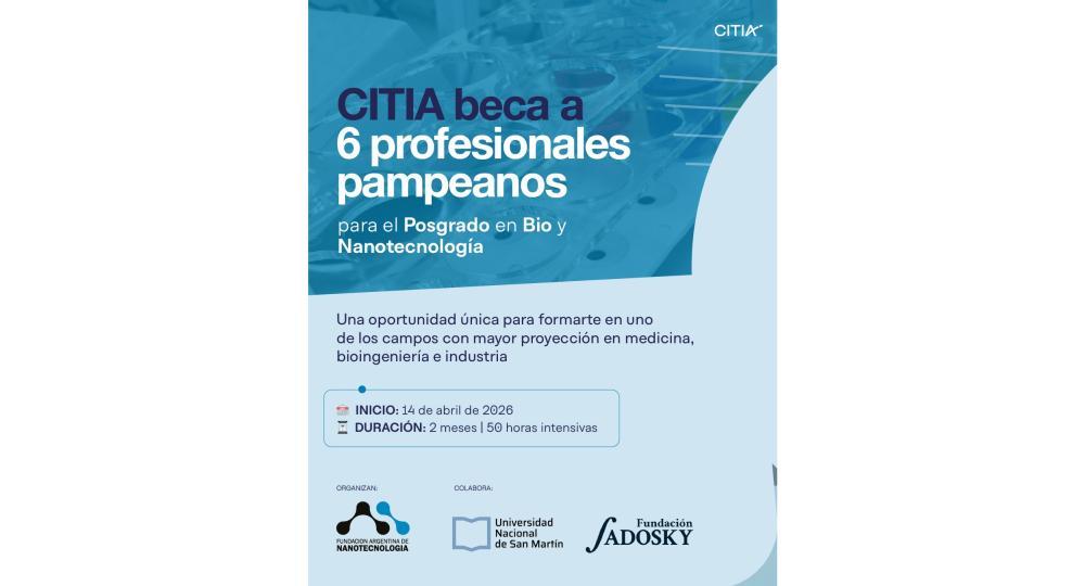 En ese sentido se firmó oportunamente un convenio estratégico entre la Agencia Pampeana de Ciencias, Tecnologías e Innovación Abierta (Agencia CITIA) y la Fundación Argentina de Nanotecnología (FAN). En ese marco, CITIA dispondrá de seis becas para profesionales que deseen cursar el Posgrado en Actualización en Bío y Nanotecnología, organizado por la FAN junto a la Universidad de San Martín y el acompañamiento de la Fundación Sadosky.