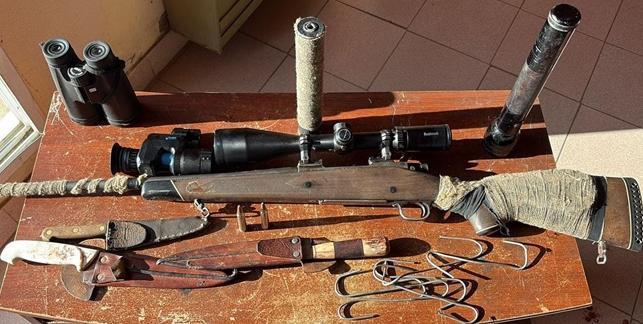 Al requisar el automóvil, los efectivos hallaron un verdadero kit de caza furtiva y evidencia de ingresos ilegales a predios rurales. Se secuestró un fusil, miras telescópicas, un visor, un silenciador, cuchillos y ganchos. También se encontró carne silvestre, presuntamente obtenida sin los permisos correspondientes.