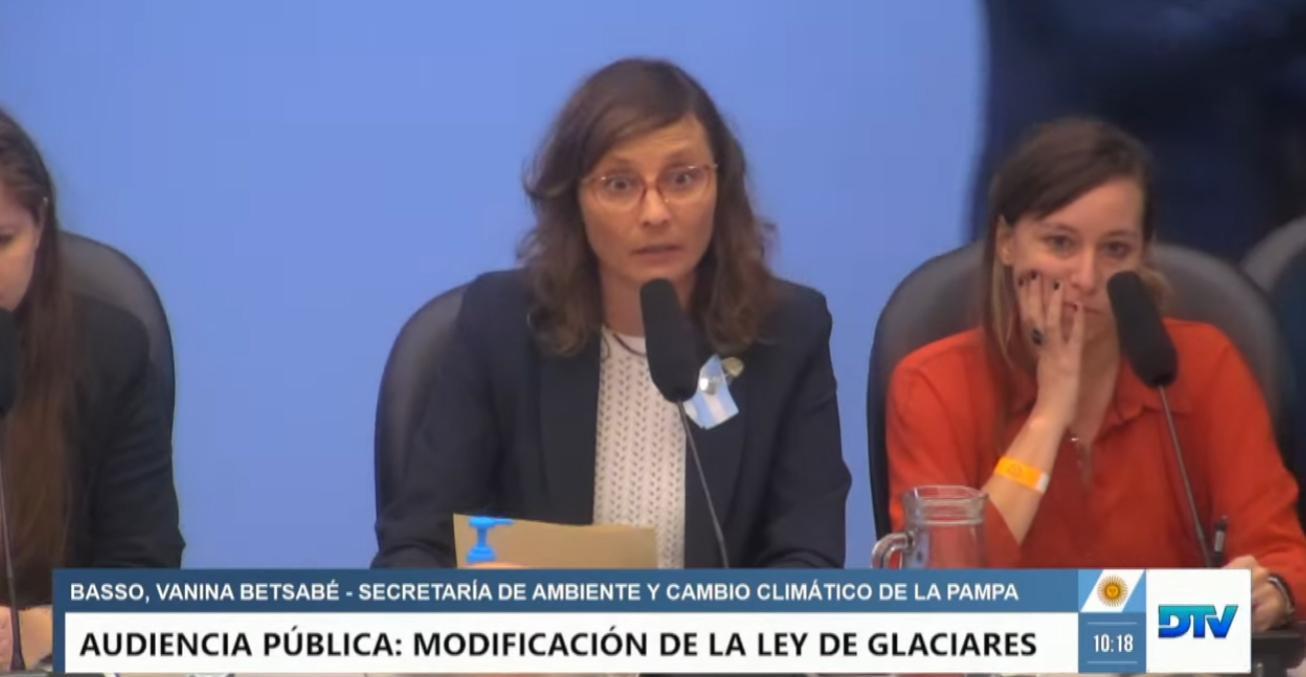 La secretaria de Ambiente y Cambio Climático de La Pampa, Vanina Basso, participó este miércoles por la mañana del debate sobre la posible modificación de la Ley de Glaciares y fijó la posición del gobierno provincial con un rechazo categórico a cualquier flexibilización de la norma.