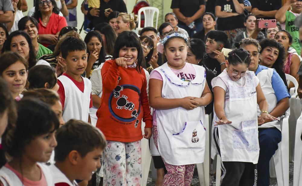 Cerca de las 15:00 horas, el clima de nostalgia dio paso a la fiesta. El estruendo de los bombos y el brillo de los trajes de la murga "Los Renegados de Siempre" coparon el playón escolar, contagiando su alegría a las familias y autoridades presentes.