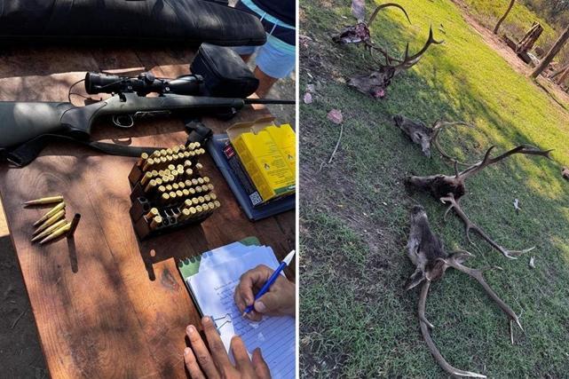 Piezas de caza: Se constataron y secuestraron cinco cabezas de ciervo y una de jabalí, productos de la actividad reciente en el campo.