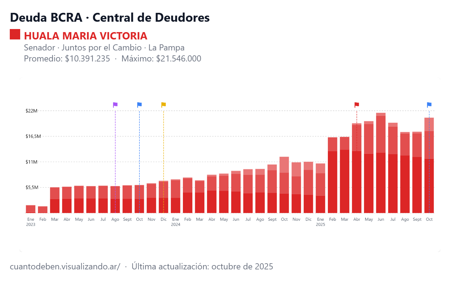 El diputado nacional del PRO Martín Ardohain presenta una deuda de 2.990.000 pesos con el Banco de La Pampa, mientras que su par Victoria Huala registra 11.713.000 pesos con el Banco Nación, 5.920.000 pesos con el Banco de La Pampa y 2.875.000 pesos con Mercado Libre.