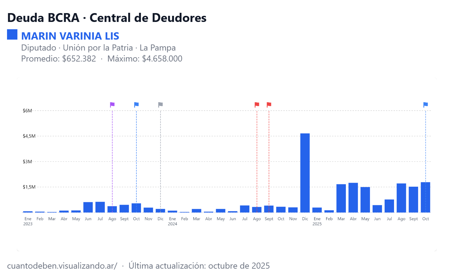 En el mismo registro aparece la diputada Varinia Marín, con una deuda de 1.784.000 pesos con el Banco de La Pampa.