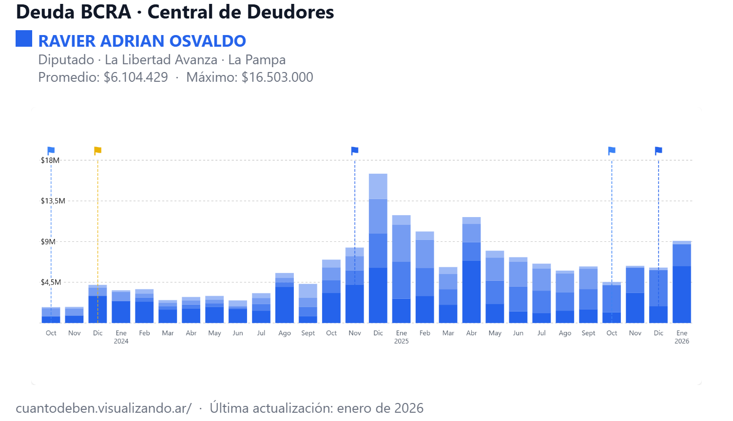 La información surge de los registros públicos del sistema financiero administrados por el BCRA, que permiten consultar la situación crediticia de personas físicas. Estos datos reflejan créditos vigentes o financiamientos registrados en el sistema y no implican necesariamente mora o irregularidades en los pagos.