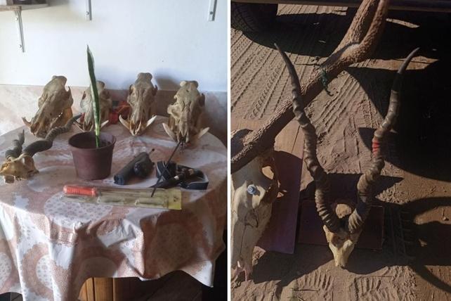 Uno de los allanamientos tuvo lugar en una vivienda de calle Emilio Lernoud, donde los efectivos secuestraron una cabeza de ciervo de ocho puntas, una cabeza de antílope y un teléfono celular.