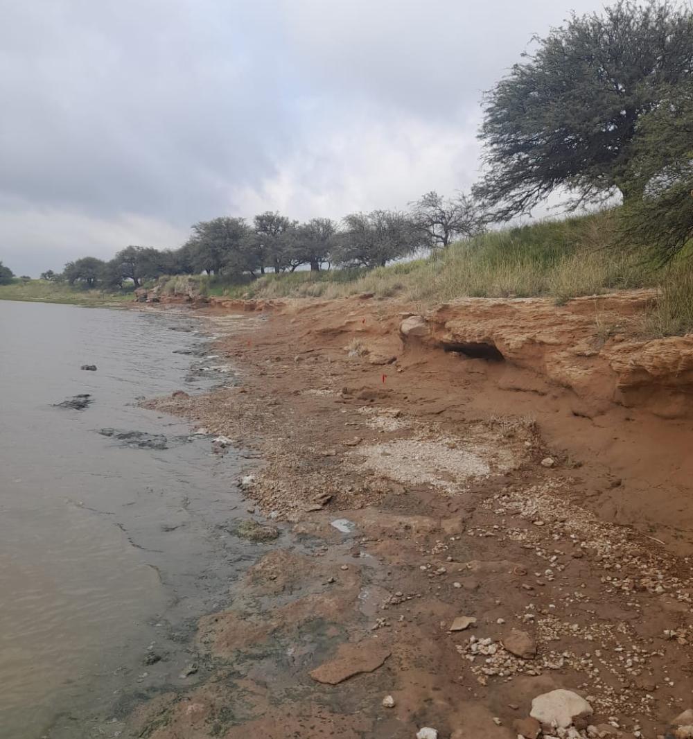 Personal del Museo Provincial de Historia Natural rescató restos de mamíferos del Mioceno tardío en los márgenes de una laguna en Rolón. El hallazgo fue posible gracias a la denuncia de un vecino y se encuentra bajo investigación en los laboratorios de la institución.