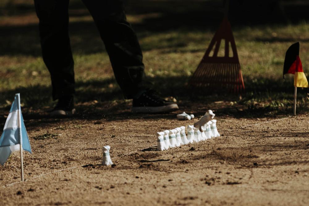 La escena parece sencilla: una cancha de tierra, delimitada con piolines, dos parejas enfrentadas a unos doce metros de distancia y una hilera de pequeñas piezas que, vistas de lejos, recuerdan a soldaditos en formación. Pero detrás de esa postal hay una historia larga, que empieza en Europa medieval y se reescribe hoy en la llanura pampeana.