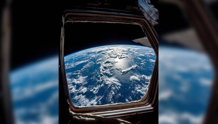 La NASA difundió además otras fotografías obtenidas desde las ventanas de la cápsula Orión, donde la Tierra aparece como una media luna rodeada por gradaciones azules y marrones de la atmósfera.