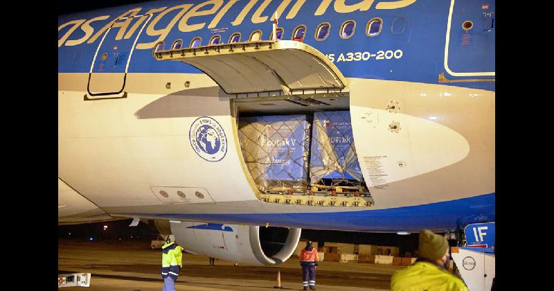 El Airbus 330-200, matrícula LV-GIF, aterrizó en el aeropuerto internacional de Ezeiza a las 4,48 de hoy ,con 1.141.000 dosis del componente 1 de la vacuna hecha en Rusia.