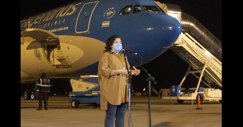 Vizzotti arribó a Ezeiza a bordo del avión de Aerolíneas Argentinas que trajo desde China 768.000 dosis de Sinopharm. Subió a ese vuelo en Madrid, donde el aparato hizo una escala técnica.