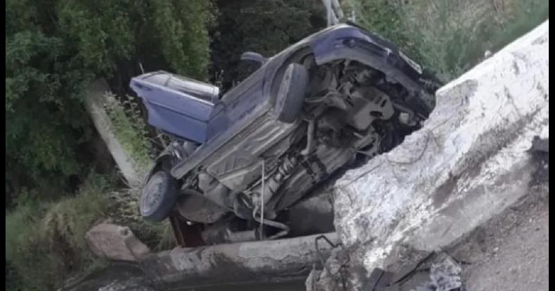 El VW Gol quedó al borde de caer a un canal que pasa por debajo de la ruta 143 en Mendoza. Todos eran oriundos de Rosario.