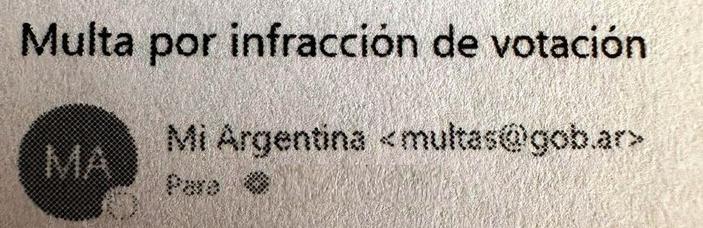 El falso correo electrónico señala que según los registros del Padrón Nacional Electoral la persona no concurrió a votar el domingo pasado. Ante esa situación, continúa el mail, se debe justificar la ausencia o pagar una multar tal como establece la ley y que para eso la persona tiene un plazo de tres días hábiles para hacerlo.