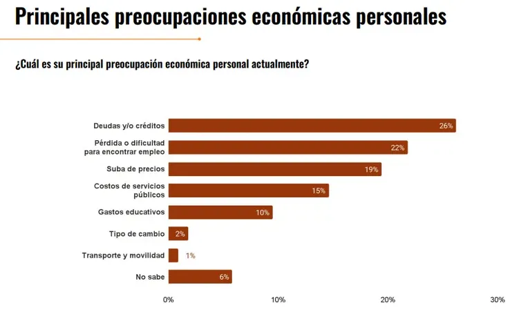 Endeudamiento: El 61% de los consultados admite que su deuda personal aumentó. El endeudamiento (26%) ya supera a la inflación (19%) como la mayor preocupación económica individual.